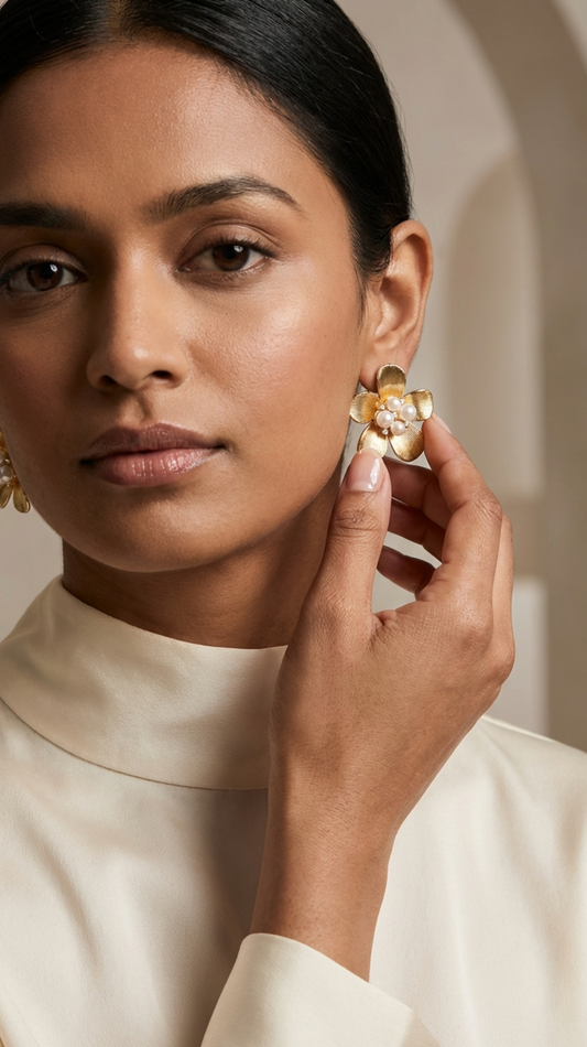 Nancy 14K Gold Plated Flower Pearl Statement Earring