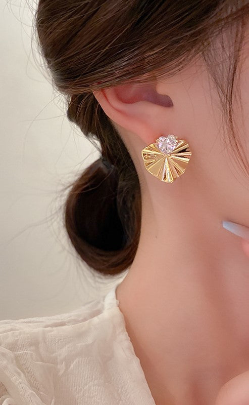 Ranan 14K Gold Plated Cubic Zirconia Heart Fan Earrings