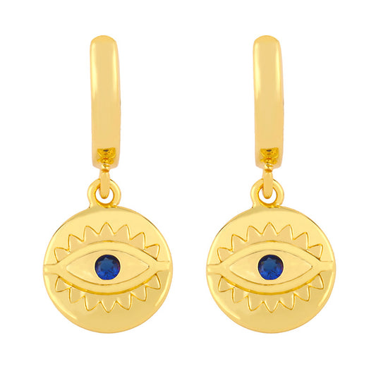 Nadia 18K Gold Plated Cubic Zirconia Evil Eye Disc Huggie Hoop Earrings
