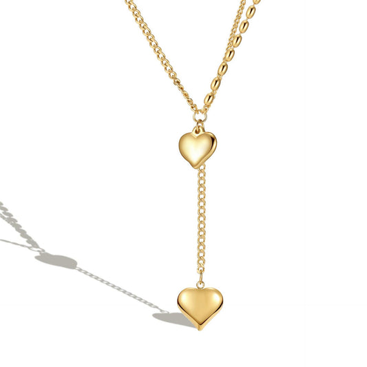 Olivia 14K Gold Plated Double Heart Multi Chain Necklace