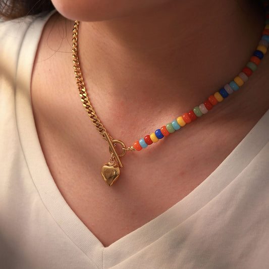 Katie 18K Gold Plated Multi Colored Ceramic Bead Heart Necklace