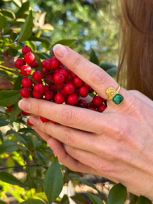 Renee 18K Gold Plated Malachite Adjustable Ring