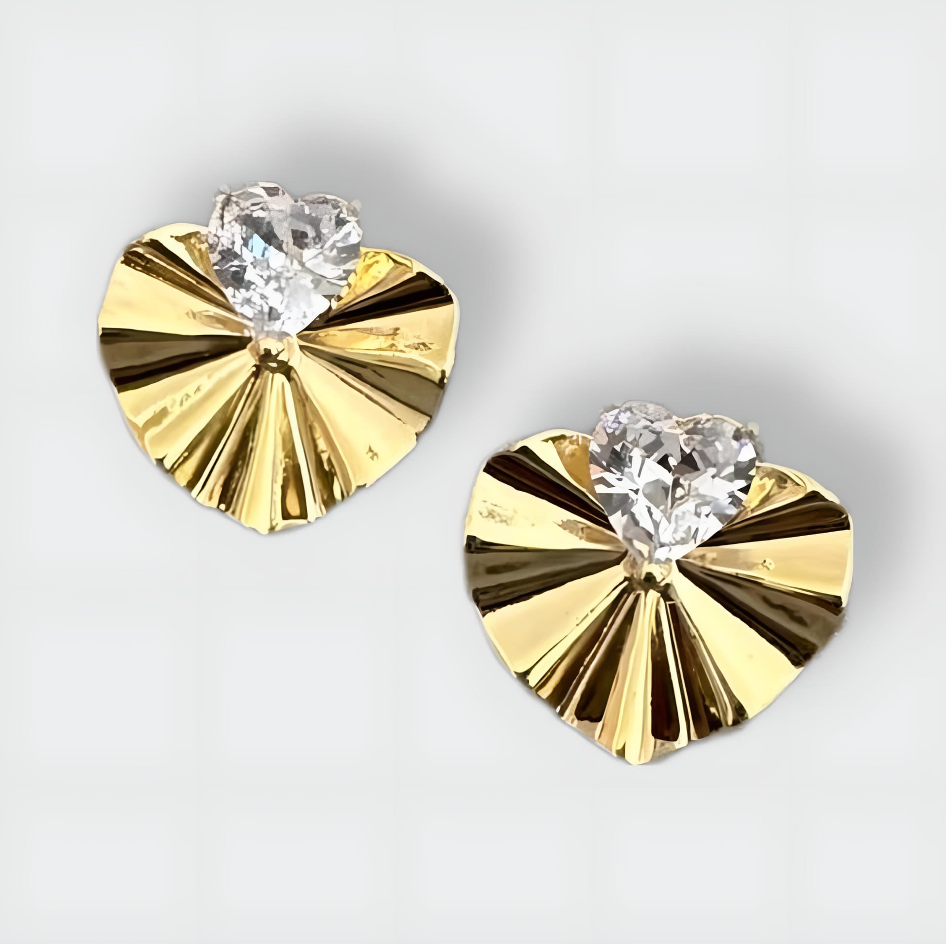 14K Gold Plated Cubic Zirconia Heart Fan Earrings