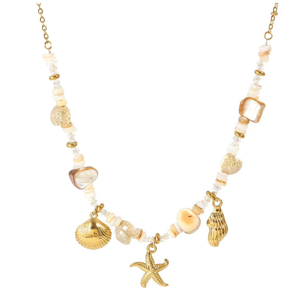 Selena 18K Gold Plated Stainless Steel Seashell & Crystal Charm Necklace